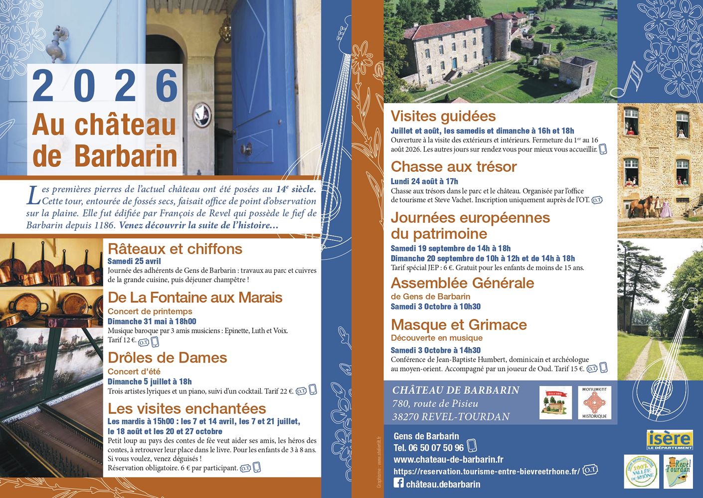 Visiter le château de Barbarin c’est entrer de plain-pied dans l’histoire d’une maison-forte Dauphinoise. Venez découvrir l’évolution du 14ème au 18ème siècle. Bati au Moyen-Age on peut voir encore des bouches à feu. Agrandi au 18ème siècle pour en faire une demeure ou l’on reçoit. Venez découvrir les salons meublés et l’exceptionnelle cuisine de 100m2 !